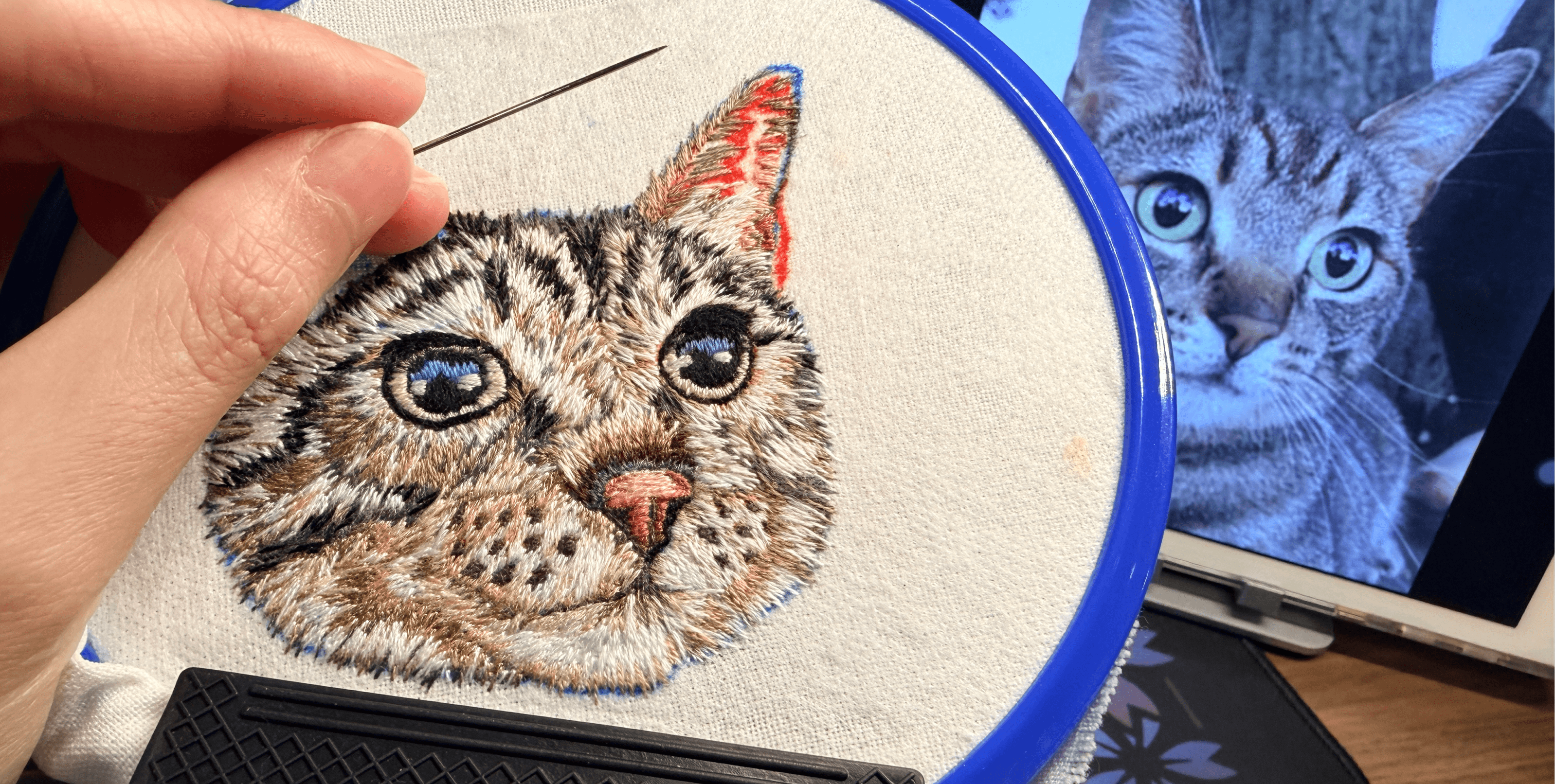 Stitching tiny pet faces… and somehow every fur color has 12 shades.
