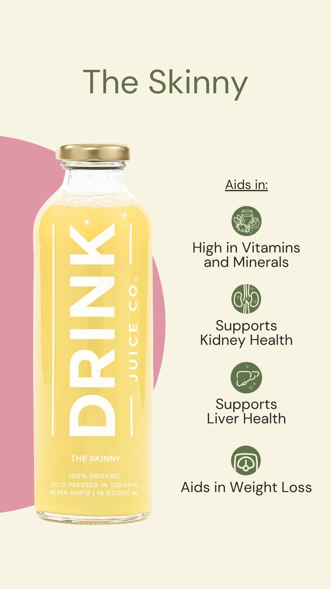 Drink Juice Co. is a Toronto-based cold-pressed juice brand offering organic juice blends with different wellness-focused benefits. The brand wanted to promote individual juice flavors through Instagram while clearly communicating their functional health benefits.